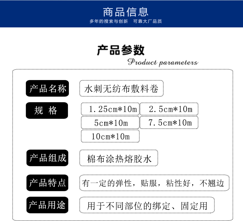 公司主要經營膠帶產品,涵蓋汽車應用、醫療健康、文化體育、工業電子、日用百貨等領域,同時公司將致力于開發更多貼近國內外市場的新產品。公司不斷努力創新,本著“品質第一、客戶至上”的服務宗旨與國內外多家行業知名品牌建立了長期戰略合作關系。